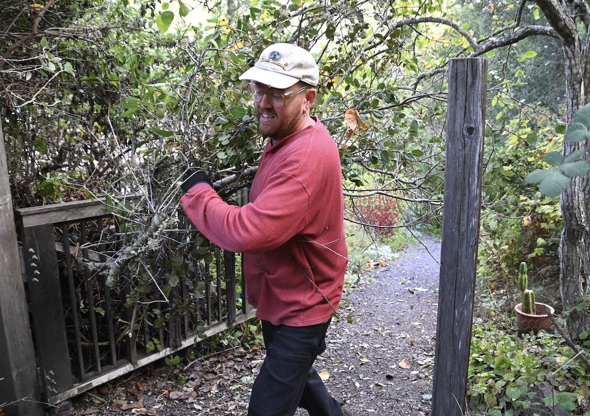 In Zone 0 (0-5 feet of a building), OAEC staff, Sowing Circle members, and external contractors are working together to create an ember-resistant zone free of combustibles. We’re removing flammable materials (such as firewood and other stored materials) from around and underneath structures, removing vegetation (which will be replaced with gravel walkways), and trimming overhanging trees to 10-20 feet above structures. For example, below the OAEC Meeting Hall, we’re removing a small willow and three old apple trees that are very close to the building, limbing up an olive tree, and removing wood mulch (which is very flammable and can hold embers for days).